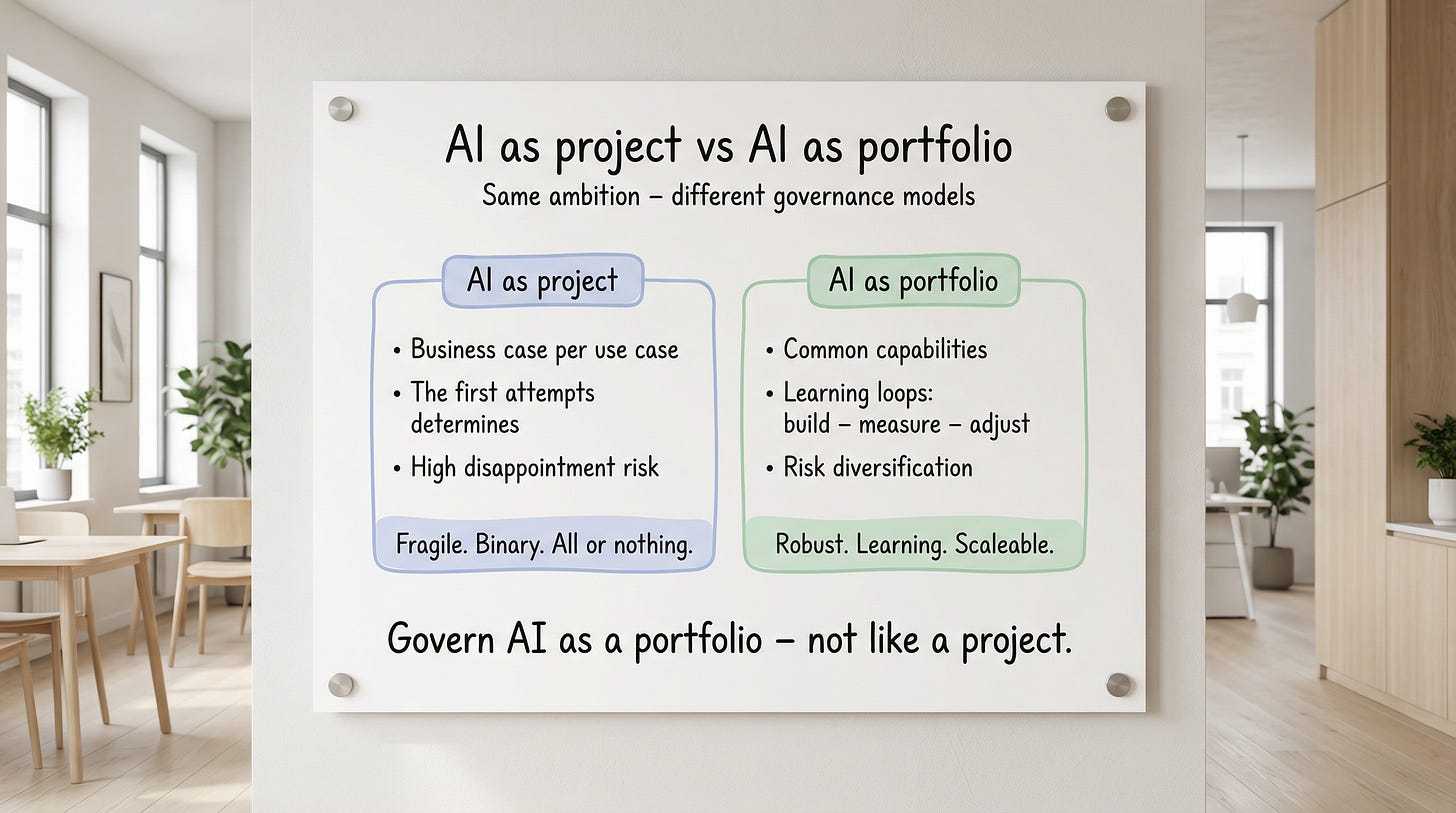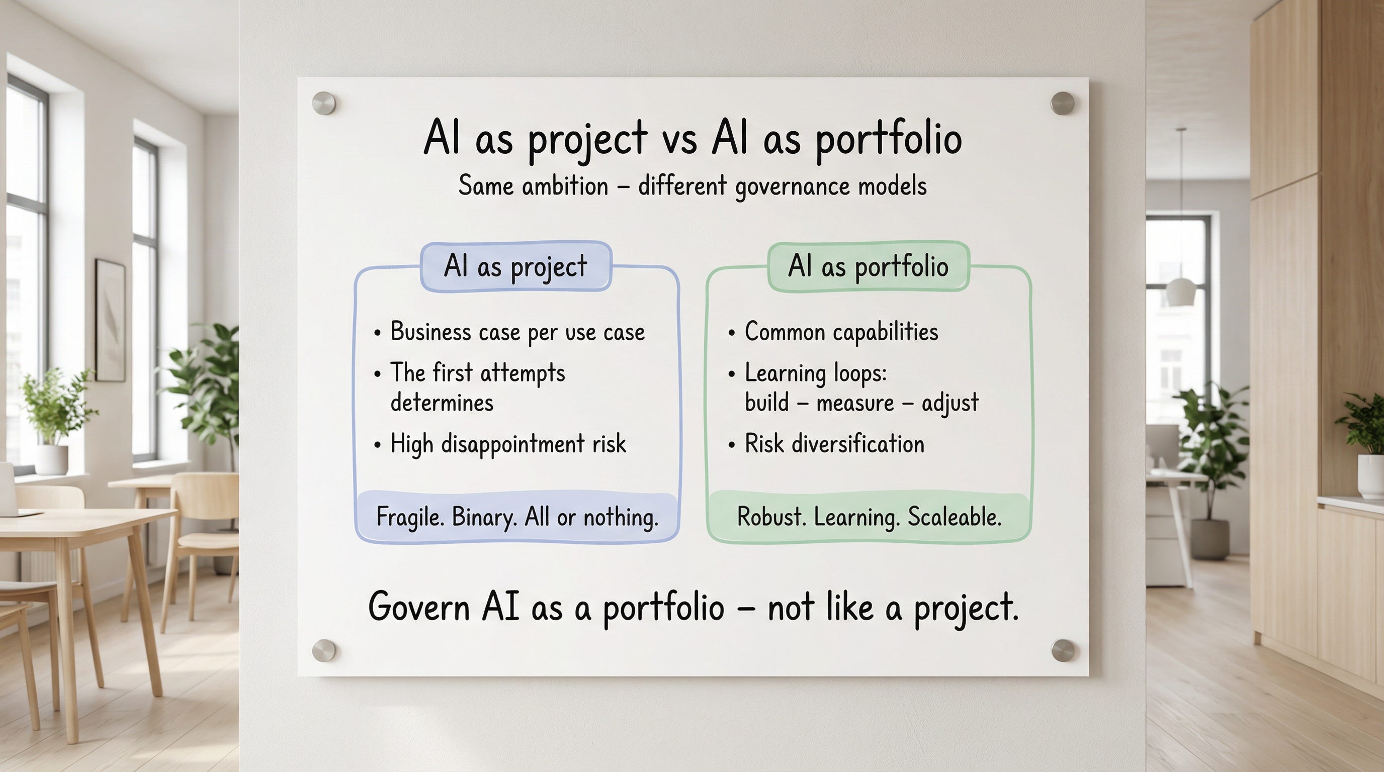 That’s why AI should be seen as an investment portfolio with a learning loop: build, measure, adjust—without getting stuck because of individual setbacks.